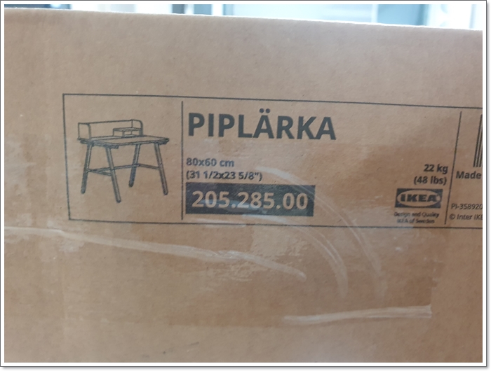다음은 이케아 러인이 책상 피플레르카! 이건 22kg입니다.