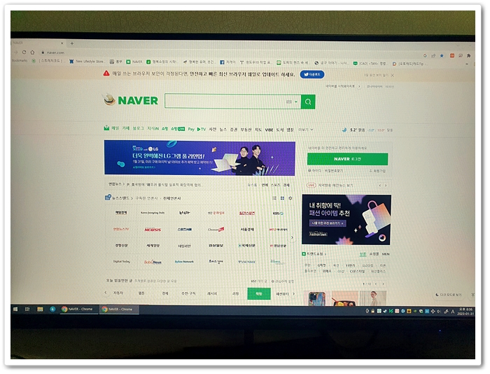 기존에 보급형 LG모니터와 비교. 확실히 베젤이 얇습니다.