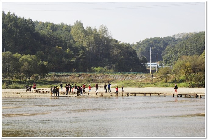 <물이 얼마나 맑은지, 외나무다리를 건너다 강바닥을 보니 송사리들이 많이 보입니다>