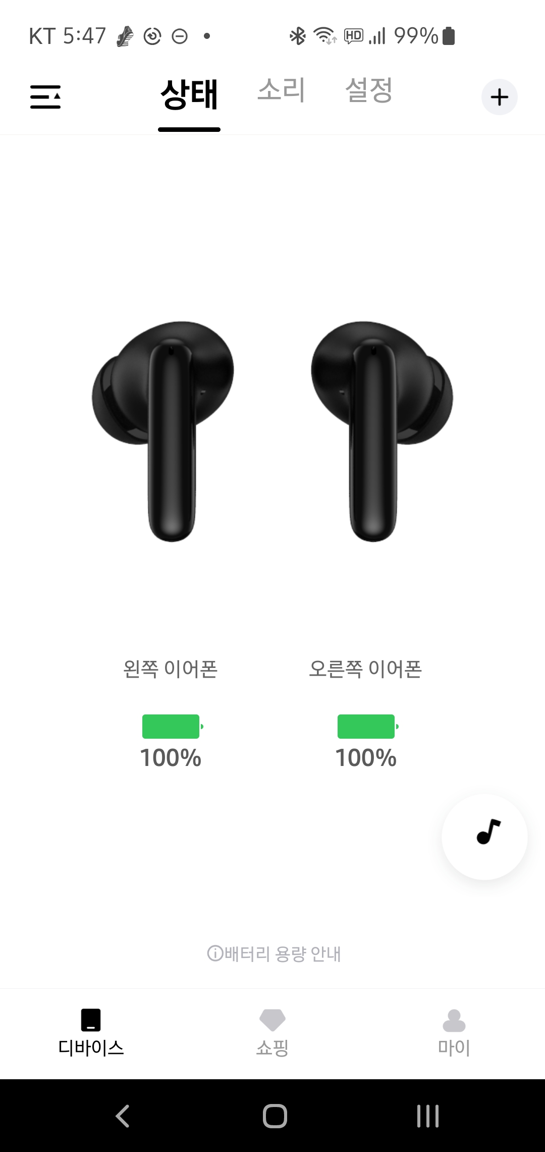 QCY 전용앱의 인터페이스는 기존과 동일합니다.