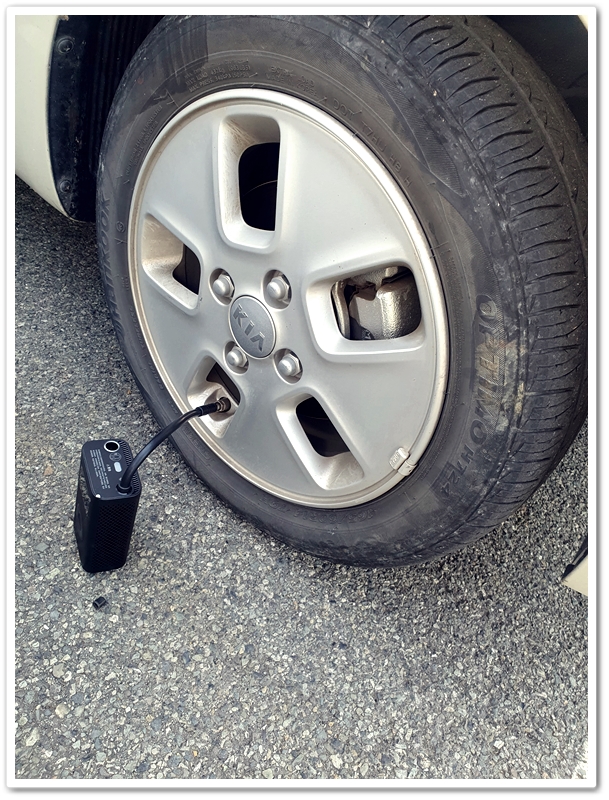 타이어 4개 전부 바람을 넣어도 충분한 용량, 시간도 그리 오래 걸리지 않고...