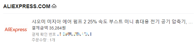오늘은 알리에서 샤오미 에어펌프 2를 구매해 보았습니다.