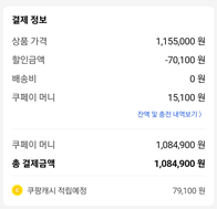 쿠팡캐시 결제시 캐시가 79000원이나 들어와 실제로는 거의 100만 원에 구매하는 효과!