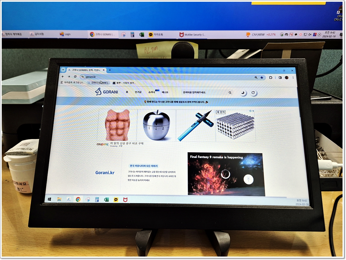 우선 모니터는 정상적인 걸 확인하였고 다음날 회사에 가지고 가 설치를 하였습니다.