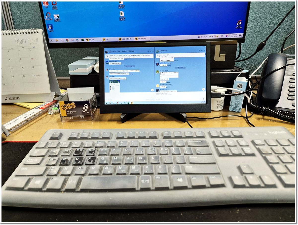 하루정도 사용해보니 유사시 보조모니터 용도로 유용했고, 몰컴하기에도 좋았습니다. (화면이 작아서 멀리 서는 잘 안 보임)