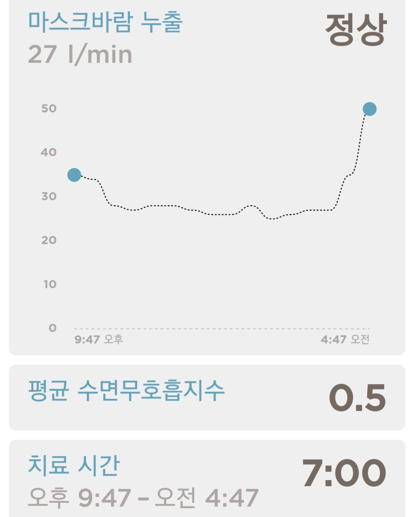 개인적으로 순응기간에 큰 문제점은... 마스크가 작아서 자꾸 에어누출로 고생했단 점 1가지와