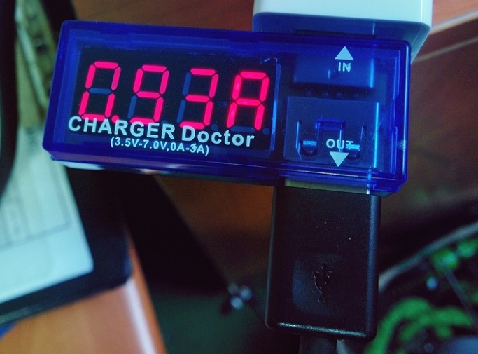 <테스트 삼아 1번째 포트에 충전을 해봅니다. 1 암페어가 조금 안 되는 0.93A...>